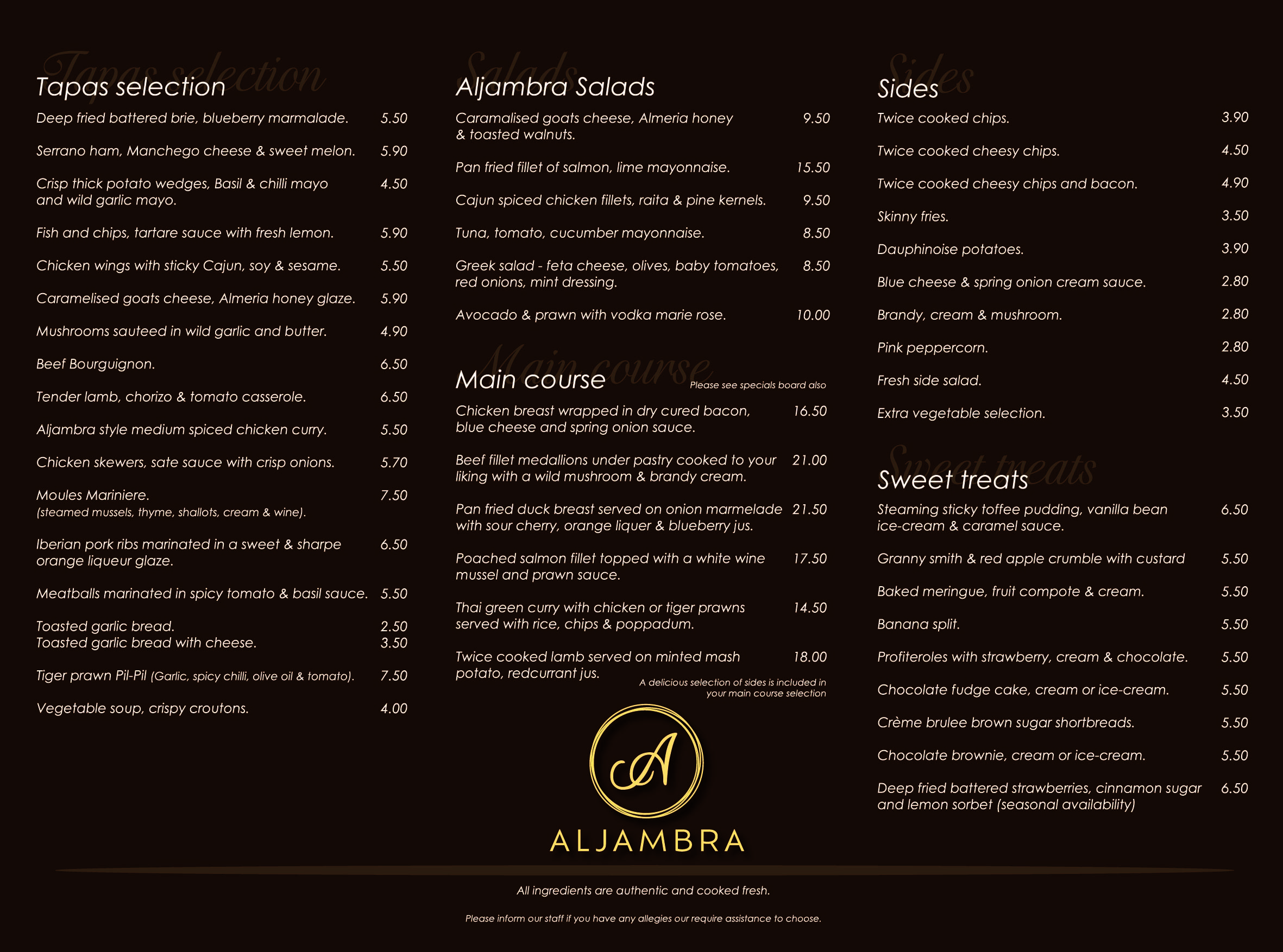 A warm greeting awaits you from the professional team at the Aljambra.Carl owner & chef is a professional chef with 35 years experience.